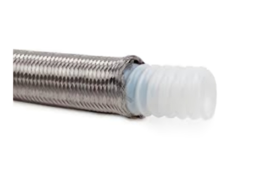 Durable Reinforced Outer Layer: The convoluted PTFE hose is reinforced with a braided outer layer, typically made from stainless steel or another high-strength material. This reinforcement provides additional strength and resistance to external pressures, abrasions, and mechanical damage, ensuring that the hose can withstand high-pressure environments and harsh working conditions.